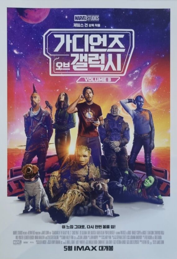블랙팬서 2, 앤트맨 3 등 기대했던 마블영화들의 만족감이 팬으로서 상당히 부족했었습니다. 저에게는 마지막 희망과도 같은 영화였는데, 역시 그 기대를 충족시켜 준 마지막 작품이었던 것 같습니다. 알려진 대로 우리가 봐온 이 멤모 그대로의 '가디언즈 오브 갤럭시' 제임스 건 감독의 시리즈는 이게 마지막이 될 것 같습니다. 1편부터 3편까지 그들만의 유쾌함과 유대감, 한 번 만나고 맞이한 멤버들은 '가디언 오브 갤럭시' 식구가 되는 그들의 히스토리대로, 분위기, 뭉클함, 재미, 모두 놓치지 않고 만들어준 것 같아서 고마웠습니다. 시작부터 흥미로운 과거 이야기들을 선보이며 몰입감을 확 올려줬고 '제임스 건' 감독의 장점인 신나는 연출들까지 등장하니 재미가 없을 수 없었습니다. 거기에 좋은 음악들을 여러 장면에 적절하게 배치하여 신나는 느낌을 더 강하게 줬던 것 도 만족스러웠습니다. 이 작품 감독 특유의 유머 코드가 안 맞을 수도 있기 때문에 취향에 따라 호 불호가 갈릴 수는 있지만 원래 시리즈의 팬이라면 시작부터 끝까지 정말 빠르게 지나가는 느낌을 받을 수밖에 없을 겁니다. 단 한순간도 지루함은 없었고 재미만 있었습니다. 이 작품은 마블이 보여줄 수 있는 장점만을 모아놓았기에 너무 좋았지만, 한편으로 걱정이었던 부분은 이번 작품을 마지막으로 '제임스 건' 감독은 마블이 아닌 DC로 떠났다는 겁니다. 이번 작품으로 유종의 미를 잘 거뒀으면 좋겠고, 이 영화를 보러 갈 계획이 있으시다면 무조건 영화관 스크린과 사운드를 직접 느끼시면서 보시는 걸 추천합니다.
