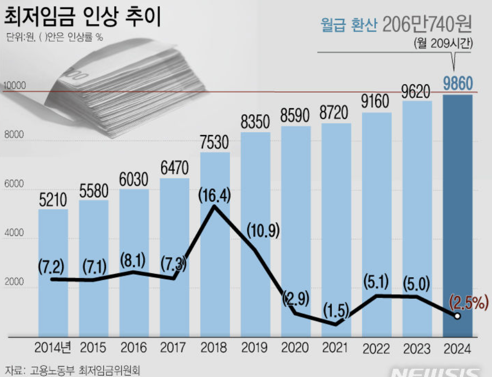 - 월급(주 40시간제) = 최저임금 × 209시간