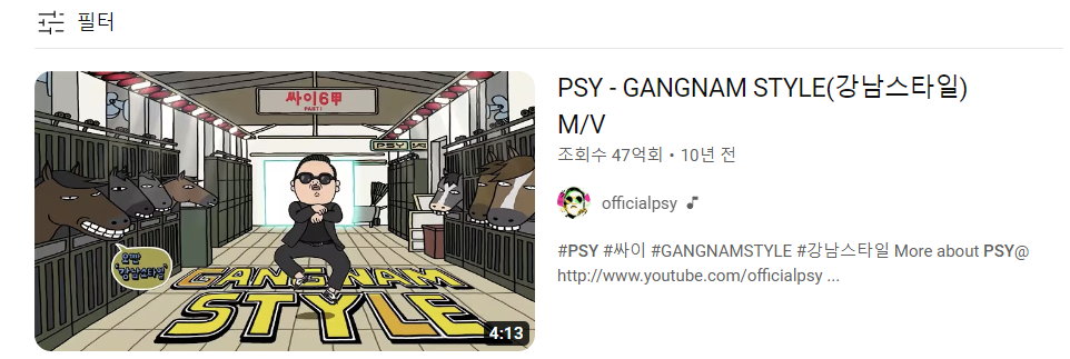 싸이의 '강남스타일'은 2012년에 발표된 곡으로 대한민국을 넘어 전 세계적인 인기를 얻었습니다. 유튜브 조회수는 무려 40억 이상이고, 그 당시 국내에선 씨스타, 브라운아이드걸스, 비스트, 티아라 등 쟁쟁한 아이돌들이 컴백한 상황에서도 음원차트 1위를 차지하는 기염을 토했습니다. 콘셉트는 역시 싸이라는 평이었지만 이렇게 까지 장기 히트를 예상했던 사람은 별로 없었습니다.