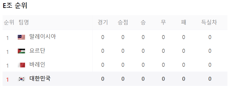 | 국가 : 대한민국 랭킹 FIFA랭킹 23위 감독 : 위르겐 클린스만 채널 : 대한축구협회, 유튜브, 페이스북, 인스타그램 조편성 E조 말레이시아, 요르단, 바레인 |