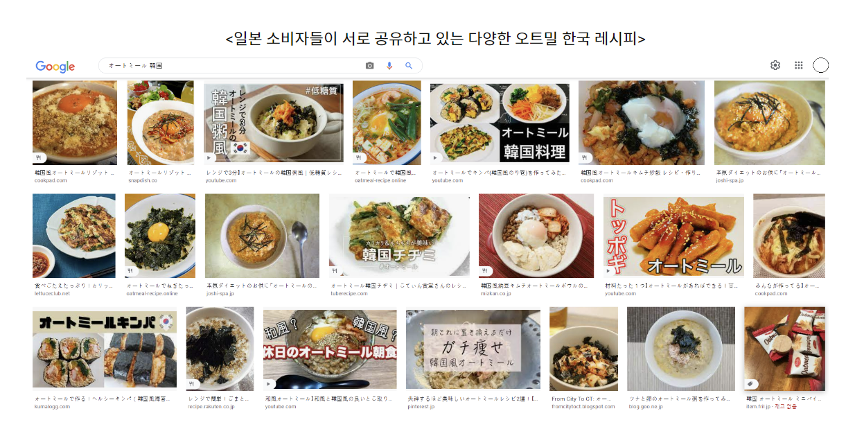 2020년 23억 엔 규모의 일본 오트밀 시장은 2026년까지 120억 엔 규모로 늘어날 전망 코로나19 속 조리 간편 성과 우수한 건강기능으로 오트밀을 찾는 소비자가 늘어남. 대기업 시장진입, 프로모션, 레시피 아이디어 증가 등 일본 오트밀 시장 확대 전망한다고 보고 있습니다.