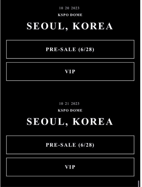 -한국 공연은 10월 20일과 21일 양일 올림픽공원 KSPO돔엣 진행이 될 예정입니다.(서울 송파구 올림픽 체조경기장)