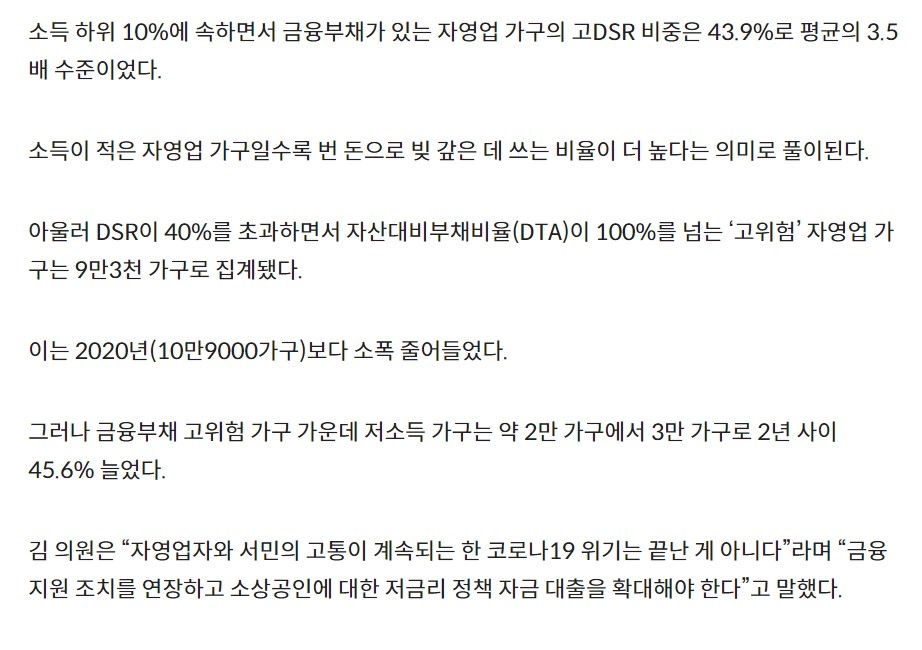 대한민국 전체 취업자 중 자영업자의 비중은 1964년 69.3%로 최대를 기록한 이후, 지속 감소하였고, 2022년에는 3.5%를 기록하였습니다. 이러한 자영업자 비중의 감소세에도 불구하고, OECD 주요국 대비 기준으로는 매우 노은 수준이라고 합니다. 2018년 기준, 대한민국의 전체 취업자 중에서 자영업자가 차지하는 비중 25.1%은 OECD 평균 15.3%에 비해 월등히 높습니다. 원인은 한구기 타 OECD 국가들에 비해서 양질의 일자리가 심각하게 부족하기 때문입니다. 한편 자영업자 비중은 소득 수준에 반비례하며, 일반적으로 1인당 국문소득이 높은 국가일수록 낮게 나타나고 있습니다. 이렇게까지 자영업 비율이 높아진 이유는 취업의 나이 제한도 크게 한몫했습니다. 나이를 조금이라도 먹으면 사용자가 안 뽑아주기 때문이죠.