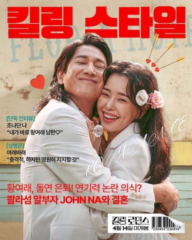 어떤 영화든 보는 사람에 따라 그 평가는 천차만별로 다를 수밖에 없다고 생각합니다. 대다수 관객에게 극찬을 받으며 명작으로 불린다 해도 어떤 이에게는 그저 재미없고 지루한 영화 일 수도 있습니다. 그 반대의 경우도 마찬가지입니다. 이번 영화 <킬링 로맨스> 또한 꽤나 극단적으로 호불호가 나뉘며 화제가 되고 있습니다. 제가 보고 나서 느낀 점은 단점도 많이 보였던 영화지만 확실한 장점을 지닌 매력적인 작품인 것은 확실했습니다. 기존 영화들과 차별화된 연출, 시각적 즐거움을 선사하는 특색 있는 미장센, 그리고 배우들이 모든 걸 내려놓은 듯한 열연은 보는 내내 작품을 미워할 수 없게 끔 만들었습니다. 초반 평점은 낮았지만 시간이 지날수록 소소하게 호평 비율이 높아지고 있으며, 만약 <킬링 로맨스>가 완성도를 언급하는 것 자체가 무의미한 수준이었다면, 개봉을 하고 얼마 못 가 소리 소문 없이 대중의 관심에서 멀어졌을 거라고 확신합니다. 오랜만에 가볍게 보기 좋은 영화로 추천드리며, 한국 영화 중에서 보기 드문 B급 감성으로 끝까지 밀어붙이는 영화입니다. 과장이 심하고 특이한 소재로 이뤄져 있지만, 적당하게 대중의 취향과 밀고 당기듯 적정선을 지키는 영화였던 거 같습니다. <이원석 감독>의 전작 중 <남자사용설명서>라는 영화를 재밌게 보셨었다면 이 영화 또한 재밌게 시청할 수 있을 거라고 예상합니다. 이것으로 <킬링 로맨스>에 대한 포스팅을 마치겠습니다.