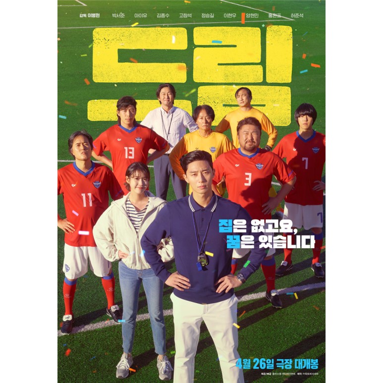 극 중 선수 생활 사상 최악의 위기를 맞이한 영혼 없는 축구 선수 홍대(박서준)입니다. 계획도, 의지도 없던 홈리스 풋볼 월드컵 감독으로 재능 기부에 나서게 됩니다. 각본 없는 각본으로 열정 없는 현실파 PD 소민(아이유)이 다큐 제작으로 합류를 하게 되면서 벌어지는 전형적인 한국 코미디 영화입니다. 축구선수 윤홍대는 두 가지 이유로 축구의 꿈을 접게 됩니다. 선수로서 꿈이 강해 열심히 노력하는 그는 같은 동료 성찬에게 넘을 수 없는 벽을 느껴버리고 맙니다. 한 편 해외 진출을 앞두고 국내에서 마지막 경기를 준비 중인 성찬에게 경쟁심을 느끼는 홍대는 같은 편을 수비해 버리는 일을 벌이고 맙니다. 다음은 사기 사건에 연루되어 도주 중인 홍대 어머니입니다. 어머니 선자는 홍대에게 도움이 되기보단 항상 짐이 되어 홍대를 괴롭힙니다. 한 편 이 사실이 알려지면서 홍대는 극도의 스트레스를 받고 있습니다. 앞선 동료 순자에 관한 문제로 극 중 해맑은 기자는 홍대에게 계속해서 인터뷰를 요청합니다. 화가 난 홍대는 해맑은 기자의 눈을 찌르고 쓰러진 기자를 폭행을 하면서 단숨에 스타덤에 오르게 됩니다. 당연히 부정적인 측면에서 말입니다. 이렇게 된 홍대는 축구 선수로는 틀렸다고 생각하고 엔터테인먼트 사장 김대표를 통해 연예인이 되겠다고 다짐합니다. 홍대의 무기는 축구 실력보단 탄탄한 몸매와 잘생긴 외모로 연예게 문을 두드립니다. 사건 사고가 많았던 홍대는 평범한 예능에 출연하는 건 쉬운 일이 아니었습니다. 김대표는 이미지메이킹이 필요한 시점이라고 생각합니다. 김대표는 홈리스 월드컵 축구 국가대표팀 감독으로 홍대를 투입시킵니다. 이들을 찍는 다큐멘터리 감독 소민(아이유)과 함께 홍대는 홈리스들을 만납니다. 모두가 예상했든 상황이 좋지 않아 보입니다. 어린아이들처럼 공 하나 주면 막 뛰어가서 노는 모습을 본 홍대는 감독을 포기하려 합니다. 이를 본 소민은 엄청난 목소리로 고함을 내지르며 붙잡습니다. 어차피 너나 나나 인생 꼬였고 우리 둘 다 이걸로 성공해야 인간답게 살지 않겠냐며 화를 냅니다. 여기서 홍대와 소민의 기싸움이 영화의 재미를 은근히 주는 것 같습니다. 소민이 다큐를 성공시키기 위해 택한 방법은 조작입니다. 축구 실력으로 선발을 하기보단 사연과 개성에 집중합니다. 각각의 사연을 방송으로 담아 보여주며 관심을 끌기 시작합니다. 이렇게 시작된 홍대를 주축으로 꾸려진 축구팀이 어떤 모습으로 성장하며 한 팀으로 이룰지 궁금해지는 영화 "드림" 이였습니다.