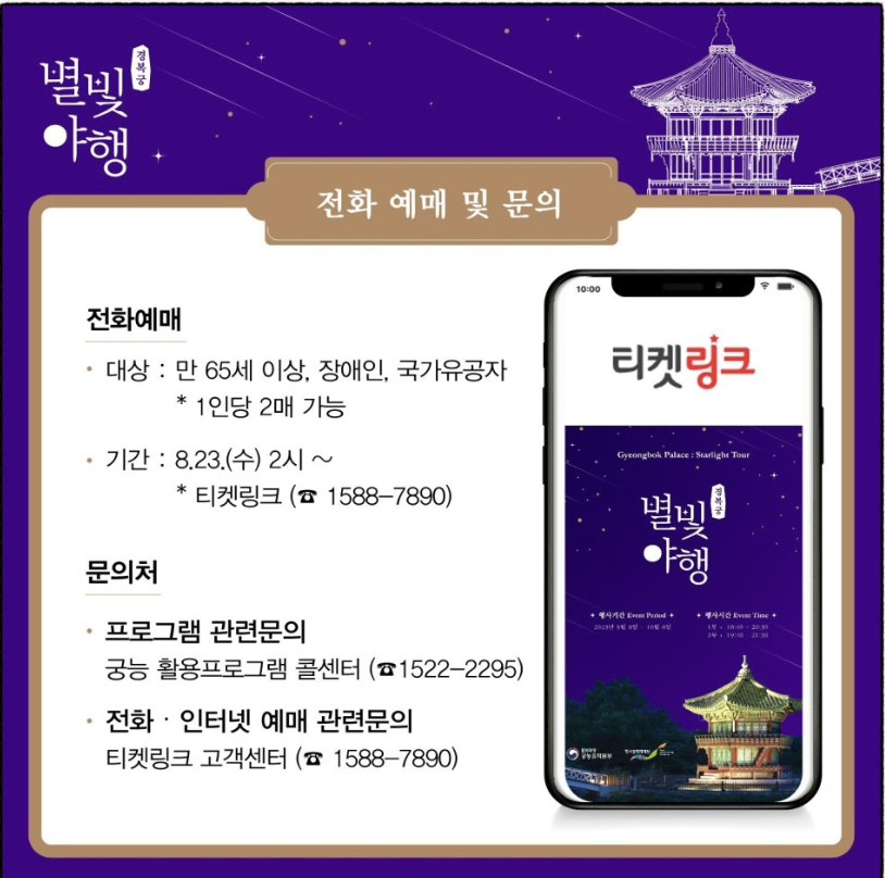 - 프로그램 관련문의 : 궁능 활용프로그램 콜센터 (☎ 1522-2295)