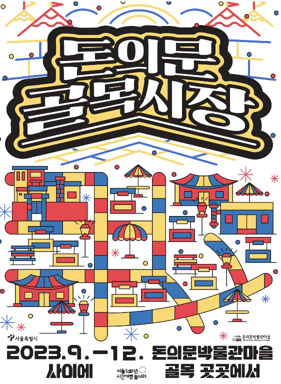| 개요 : 축제 기간 : 2023.9.2. (토) ~ 2023.10.28. (토) 시간 : 11:00 ~ 17:00 (12:00~18:00) 장소 : 돈의문박물관마을 정보 : https://dmvillage.info/ |